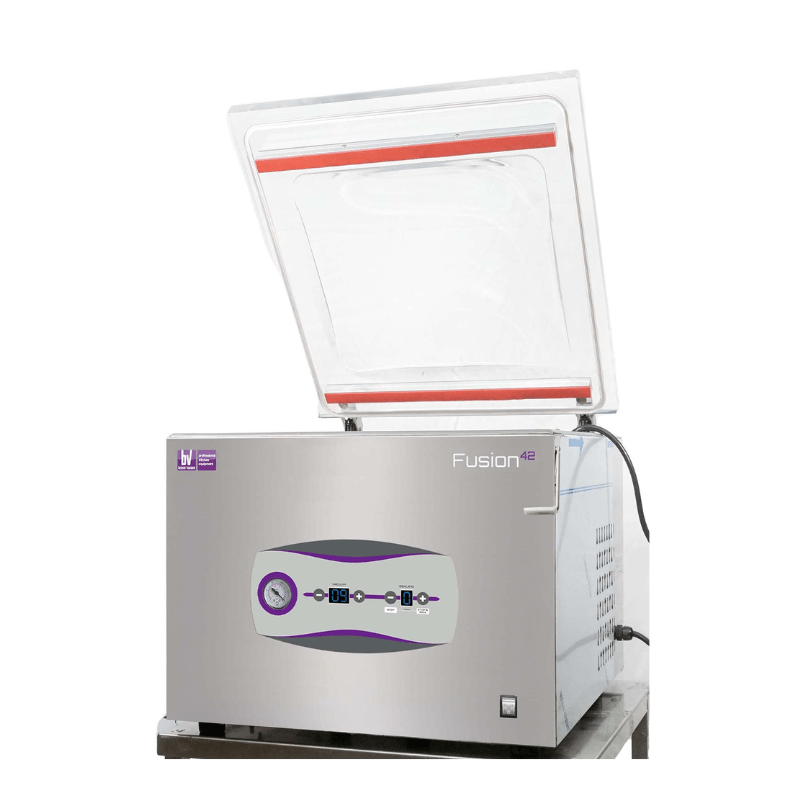 Sella y empaca al vacío todo tipo de productos con la empacadora al vacío de campana FUSION 42 de una manera práctica y eficiente, optimizando procesos y reduciendo la merma y el desperdicio. Equipada con una poderosa bomba de 16 m3/h capaz de extraer el 99.8% de vacío en solo 30 segundos y dos barras de sellado de 42 cm que te permitirá darle a tu producto un empacado seguro y de calidad.